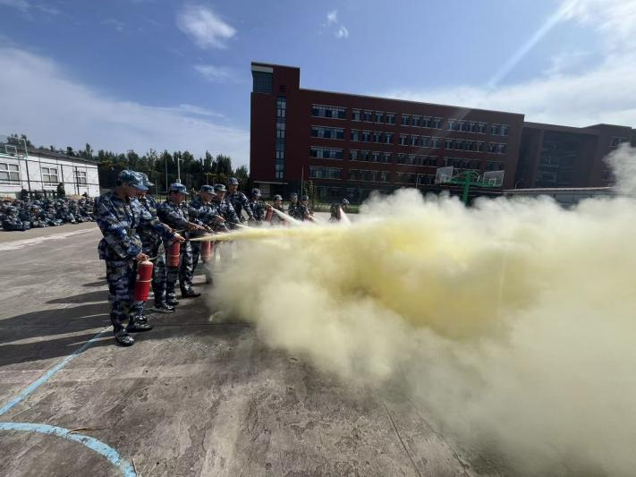 9月17日上午,消防灭火演练以军训营为单位有序开展。学校安工部工作人员与消防维保公司专业人员首先向同学们进行理论讲解与实操示范。讲解结束后,新生代表们纷纷踊跃参与实操,在专业人员的全程指导下亲身体验灭火过程,将理论知识转化为实操技能,切实掌握初期火灾的处置方法。